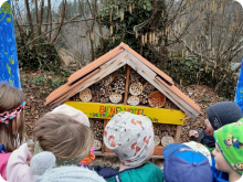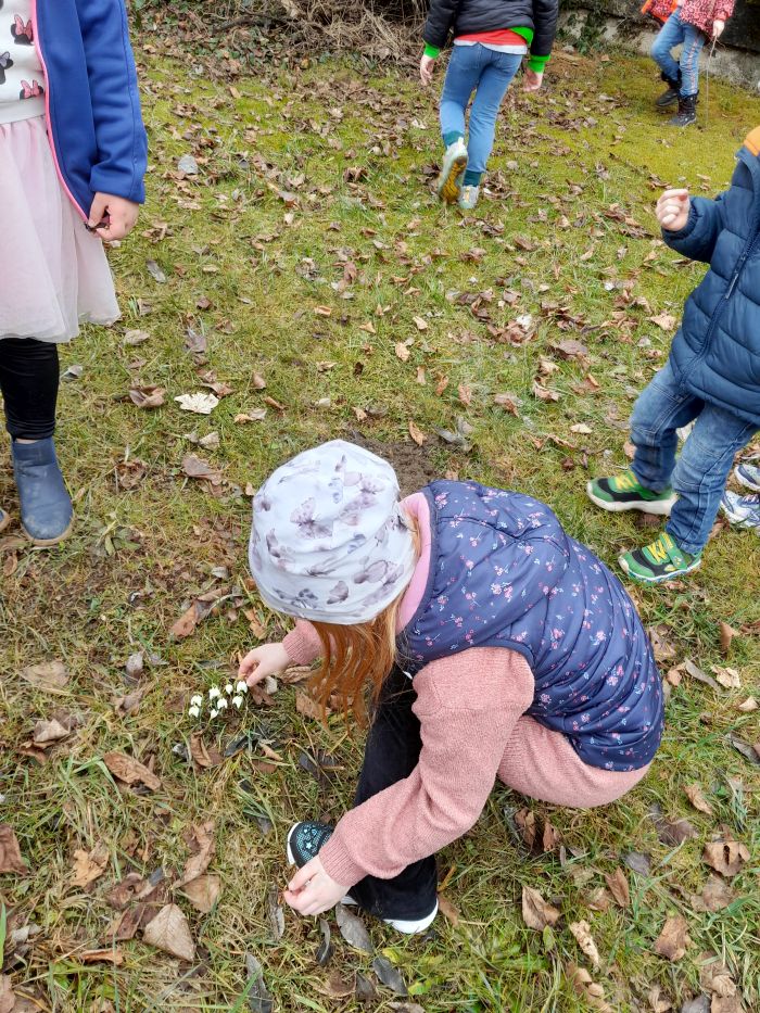 Wieder einmal besuchten wir das Bienenhotel, welches wir mit Gerhard Ehrenhöfer und seinen KollegInnen vom Bienenzuchtverein gebaut haben. Voller Freude entdeckten die Kinder neue Bewohner darin. Außerdem konnten die Kinder die ersten Frühlingsboten auf der Wiese finden. Im Kindergarten ist es uns sehr wichtig, dass die Kinder die Jahreszeiten mit allen Sinnen erleben und ihnen der achtsame Umgang in und mit der Natur näher gebracht wird.